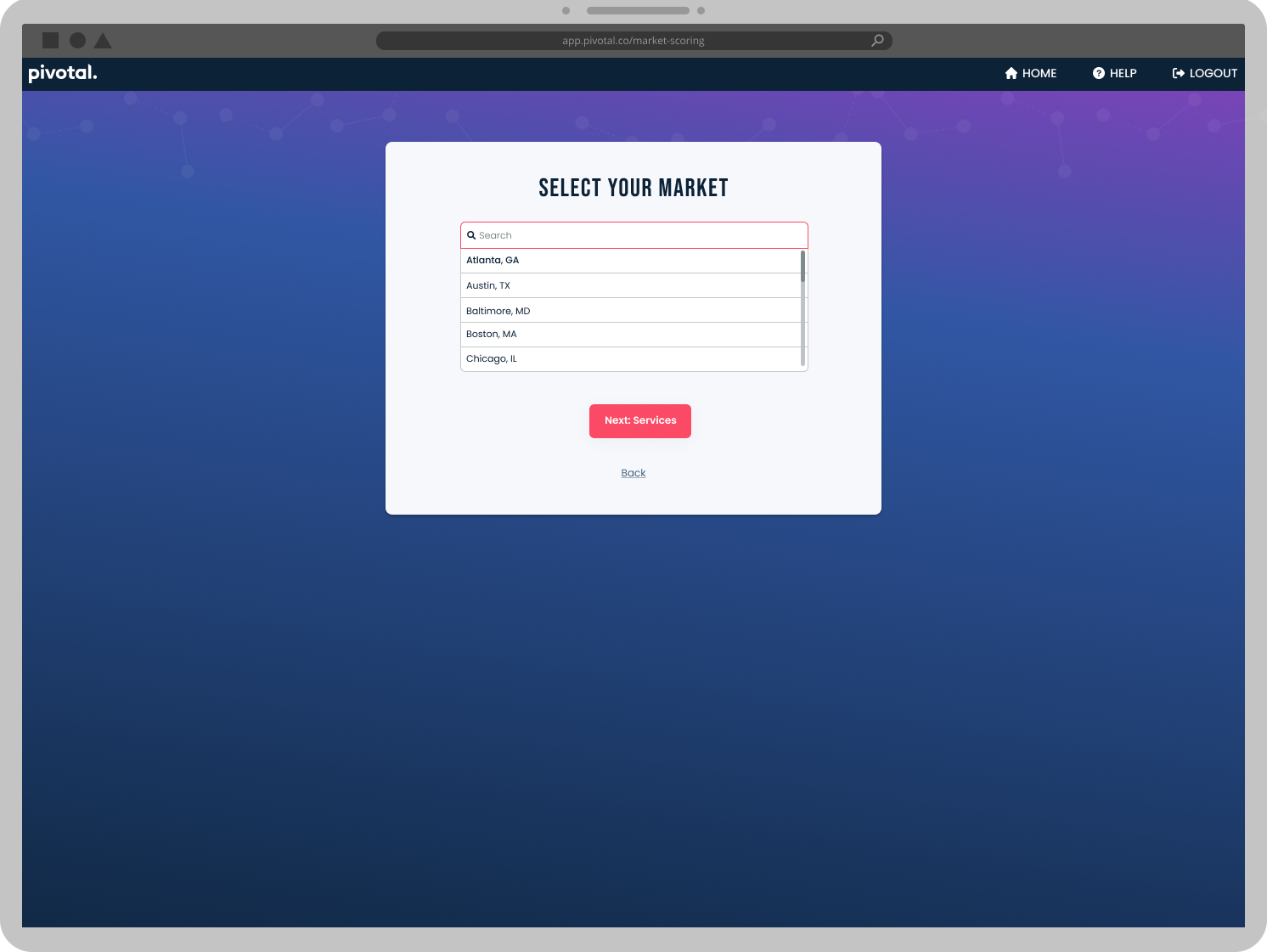 Our users had specific goals in mind when they determined markets of interest. We provided algorithms that assigned weights to different levels of variables which were disclosed when the user wanted them, but did not get in the way of a simple experience of few clicks to get to their regional assessment. The list of goals are planned to grow and evolve with feedback, and eventually allow users to toggle weights in the algorithm themselves.